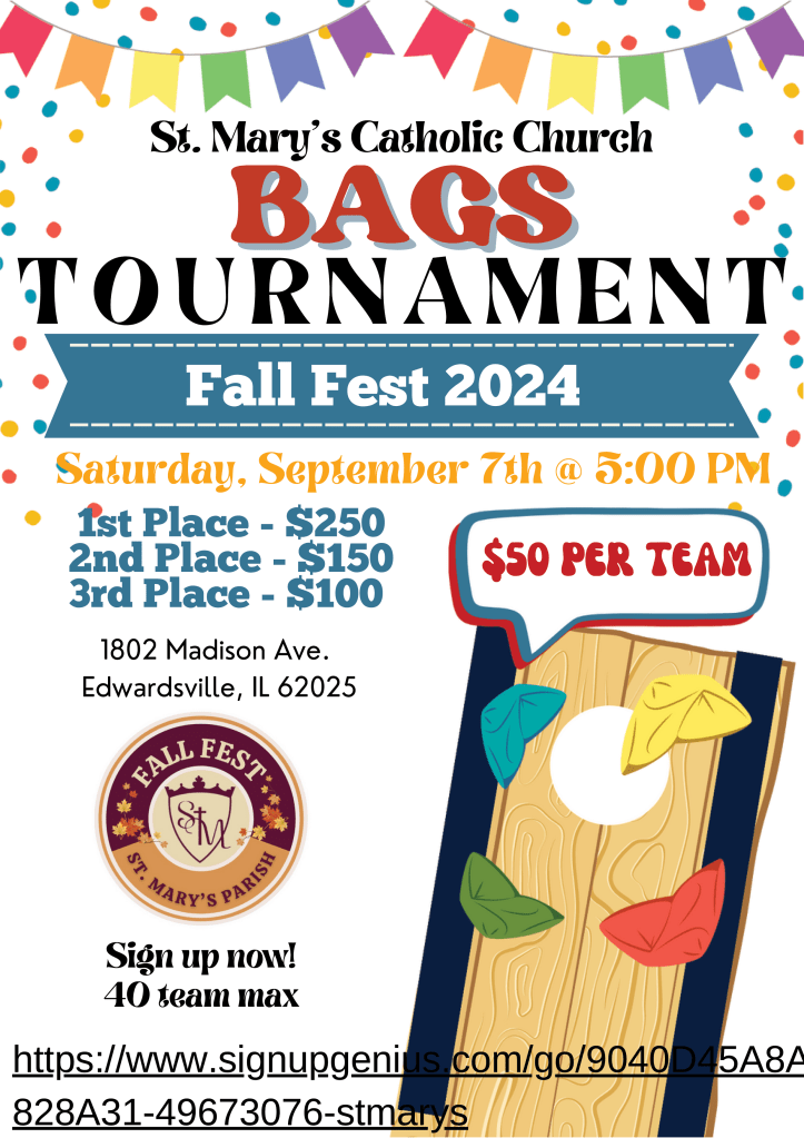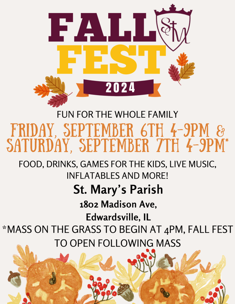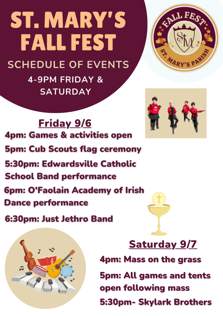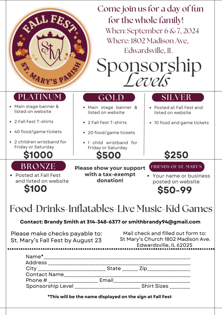 Watch for updates, schedule, volunteer opportunities, and sponsorships for St. Mary’s favorite FUNdraiser of the year!
